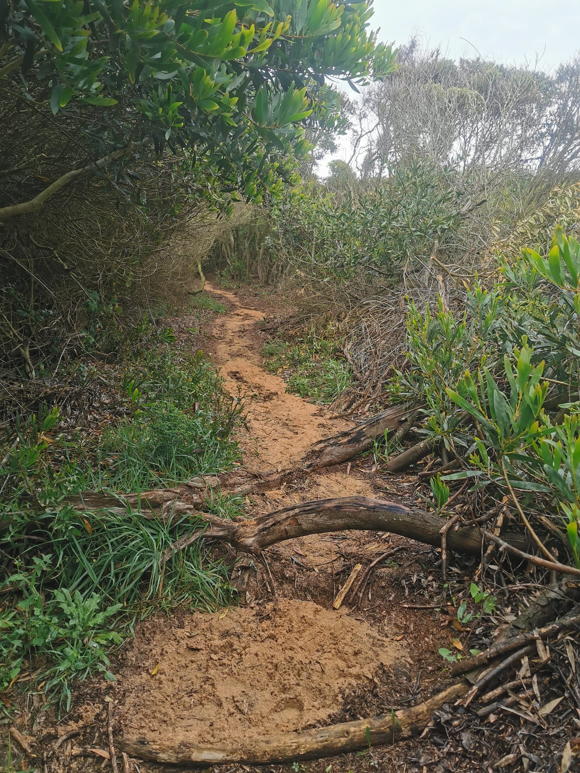 Dichtes Gestrüpp und Wegführung im Landesinneren
