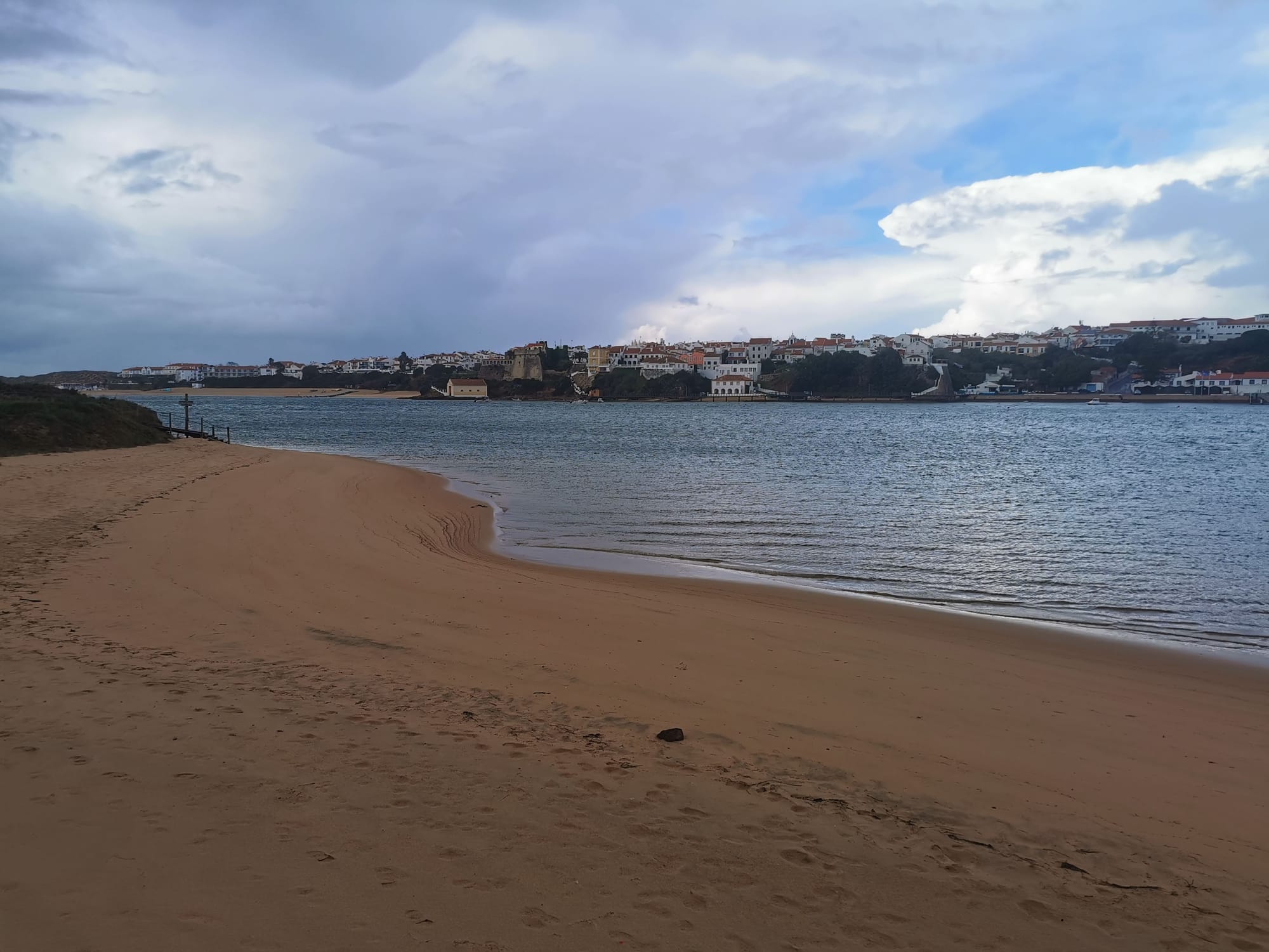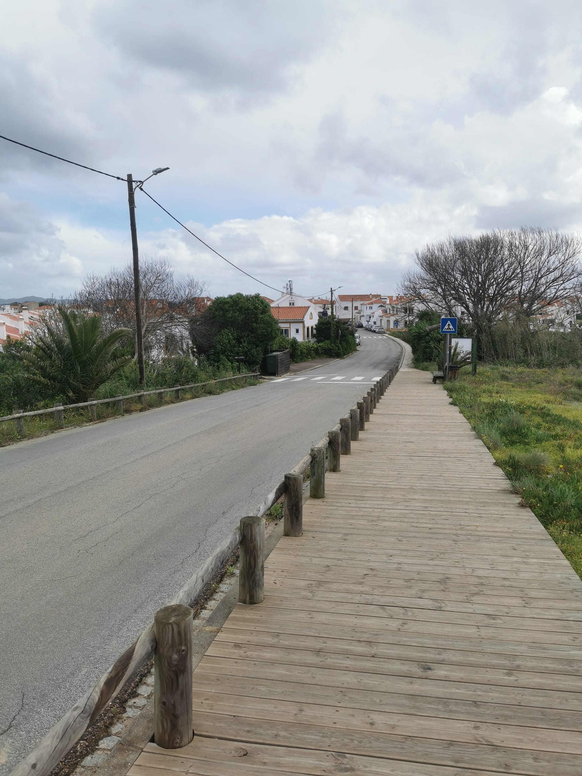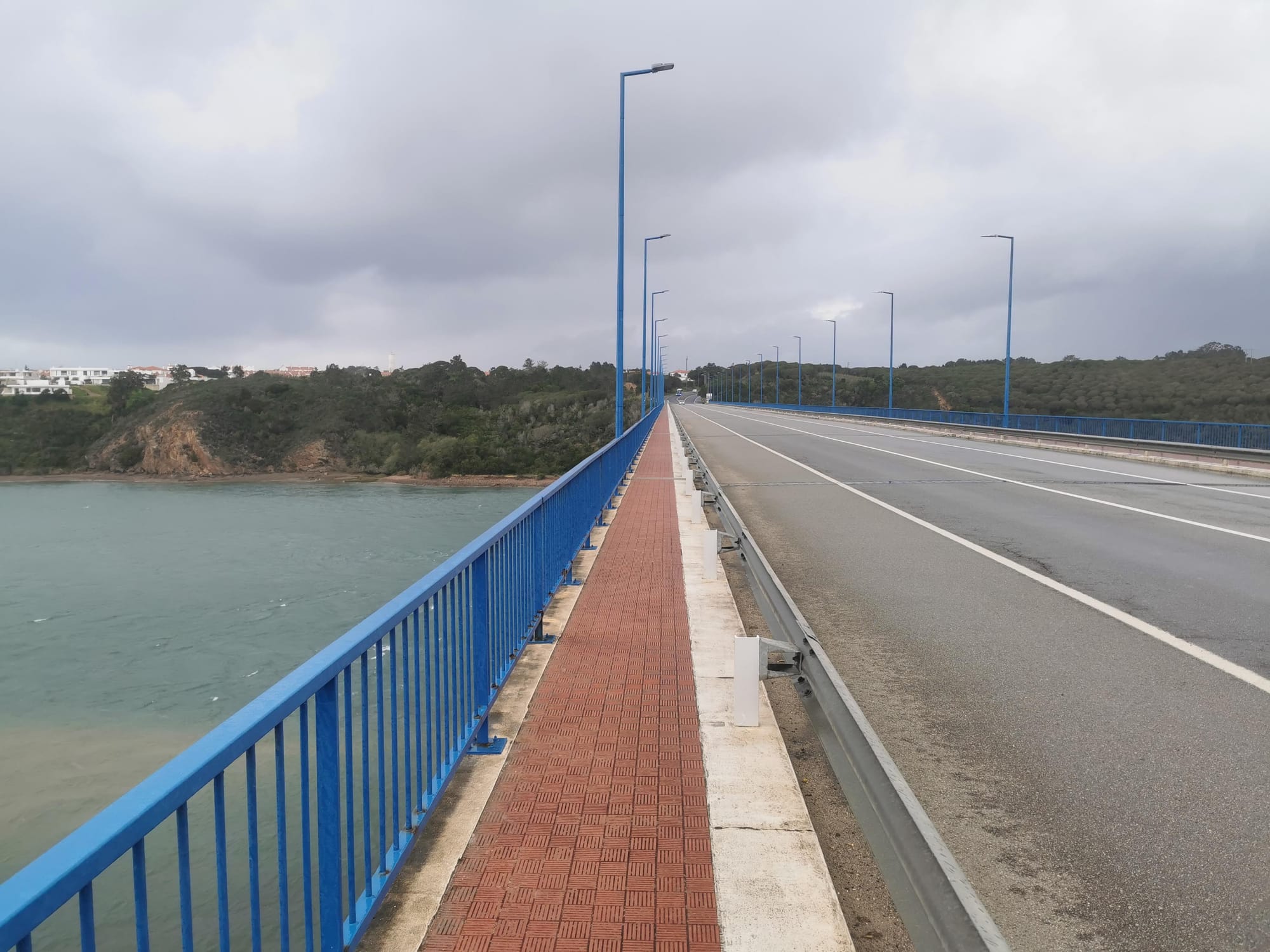 Bei ungemütlichem Wetter kam Vila Nova de Milfontes in Sicht. Das heutige Etappenziel. Der Teil bis über die Brücke in die Stadt zog sich etwas, da ich den Wasserlauf umgehen musste.